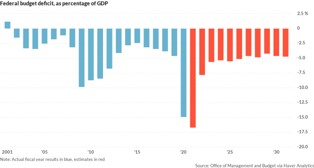 Biden is proposing the biggest budget outlays since World War II even though the U.S. economy by this summer will have made up all the lost growth imposed by the COVID recession.